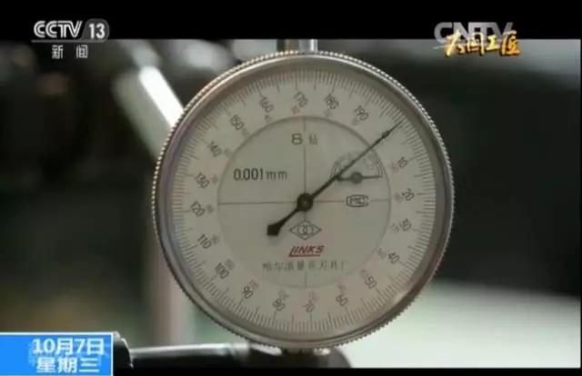 在這個(gè)千分表上,一個(gè)刻度就是千分之一毫米,相當(dāng)于一根頭發(fā)絲的六十分之一?,F(xiàn)在千分表顯示,這個(gè)量具的高度比零多出了兩格,也就是說(shuō),比標(biāo)準(zhǔn)尺寸多了千分之二毫米。