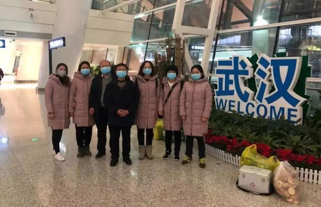 中國兵器支援武漢醫(yī)療隊到達武漢(左7王敏、左1王曉霞)