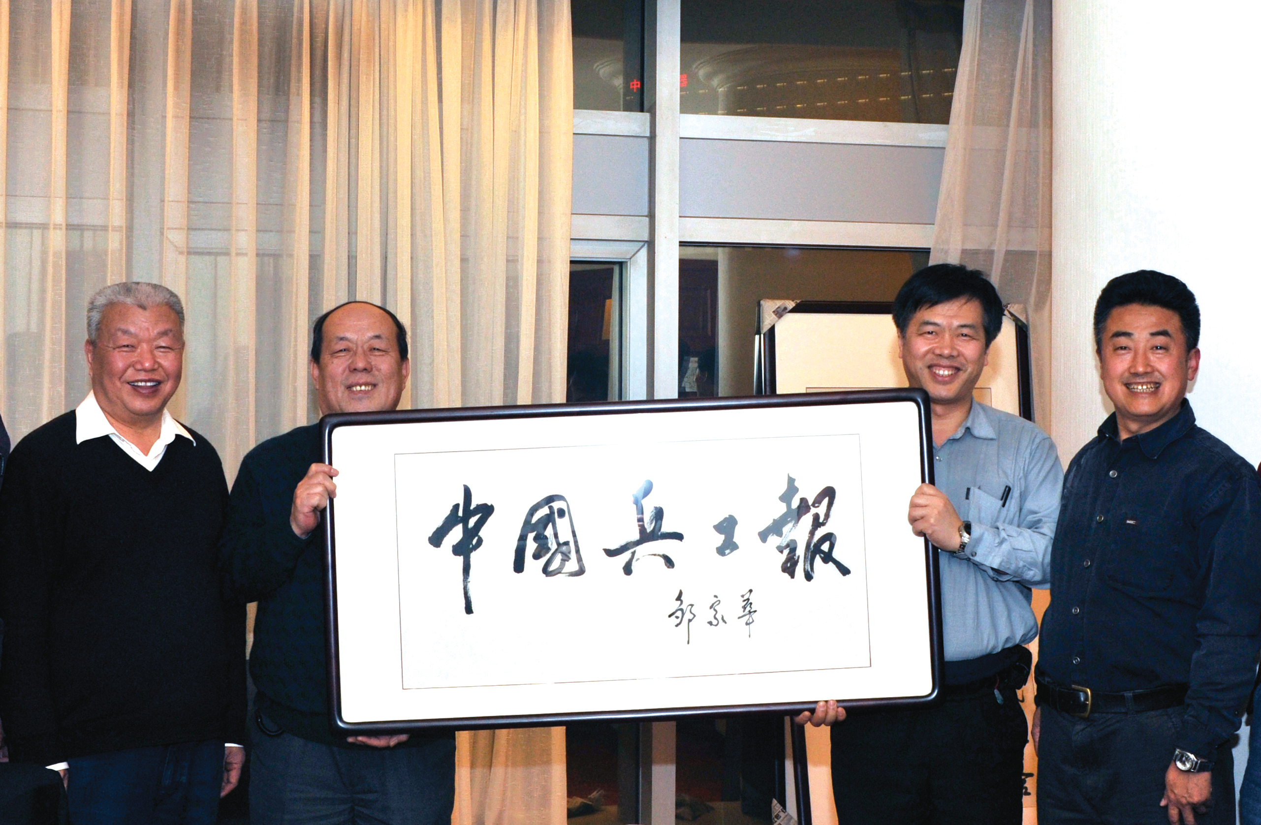 1994年11月14日,原兵器工業(yè)總公司總經(jīng)理張俊九致函時(shí)任中共中央政治局委員、國(guó)務(wù)院副總理鄒家華,懇請(qǐng)他為《中國(guó)兵工報(bào)》題寫報(bào)紙名稱。鄒家華對(duì)兵器工業(yè)格外關(guān)心,第一次為軍工行業(yè)即將創(chuàng)刊的報(bào)紙題寫報(bào)名(見報(bào)紙刊頭)并題詞:軍民結(jié)合經(jīng)驗(yàn)多,交流信息效益升(見下圖)。