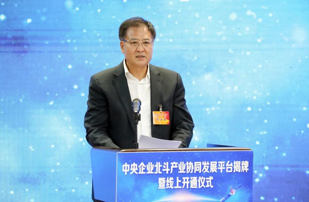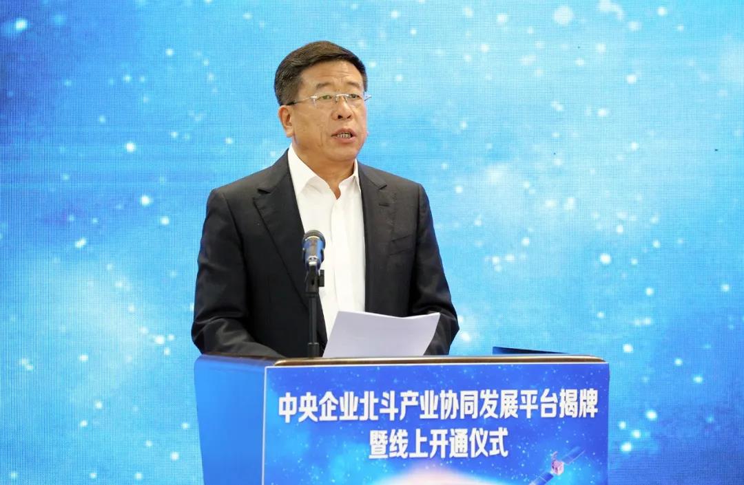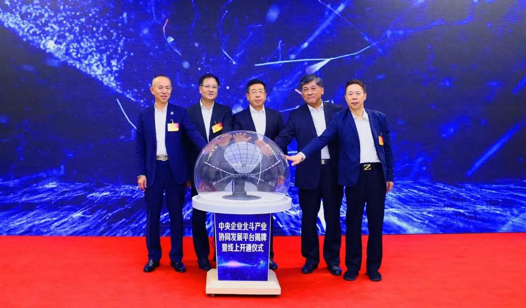 ?。◤淖蟮接乙来螢椋┤匠衅?、焦開河、任洪斌、劉大山、王建華共同為中央企業(yè)北斗產(chǎn)業(yè)協(xié)同發(fā)展平臺(tái)揭牌