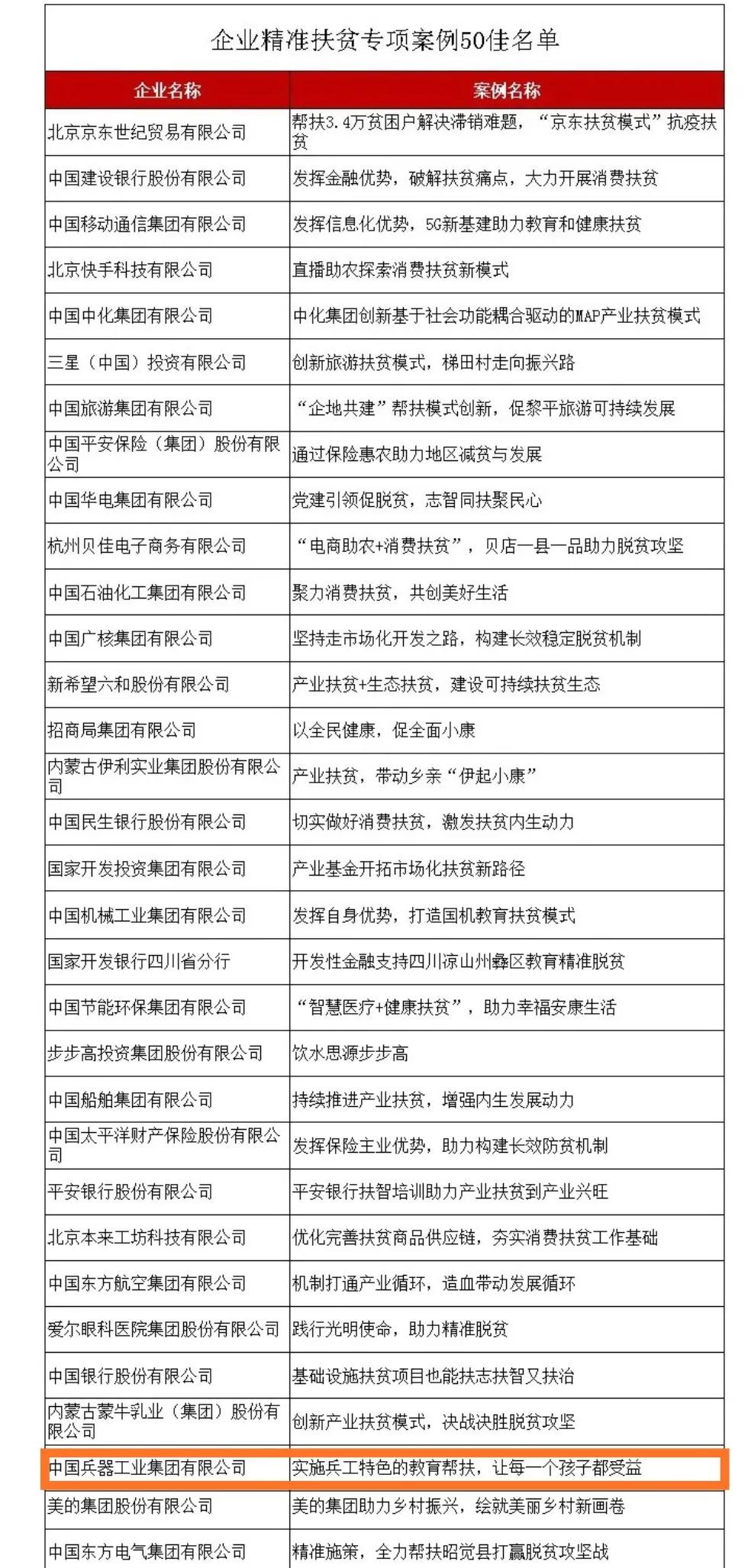 近日,國務院扶貧辦發(fā)布2020年企業(yè)精準扶貧案例獲獎名單,中國兵器工業(yè)集團有限公司《實施兵工特色的教育幫扶,讓每一個孩子都受益》案例入選2020年企業(yè)精準扶貧專項案例“50佳”。