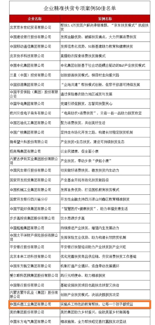 兵器工業(yè)集團教育扶貧獲評國務院扶貧辦2020年企業(yè)精準扶貧專項案例“50佳”
