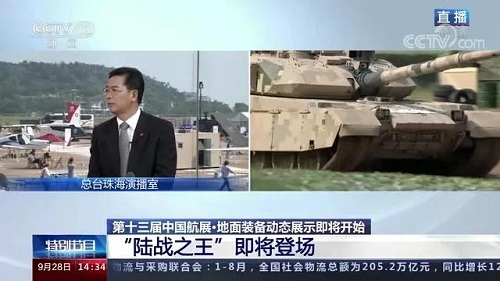 央視《新聞聯(lián)播》報(bào)道第十三屆中國航展,著重介紹了VT4主戰(zhàn)坦克,關(guān)注航展公眾日中國兵器館情況。9月28日下午央視《新聞直播間》航展特別節(jié)目《藍(lán)天盛會》邀請集團(tuán)公司訪談嘉賓做客直播間對中國兵器館兵器工業(yè)集團(tuán)展區(qū)等進(jìn)行1小時(shí)直播;9月28日下午、10月2日下午分別對地面裝備動態(tài)表演進(jìn)行兩場直播。央視《朝聞天下》、《新聞直播間》、《共同關(guān)注》、《天下財(cái)經(jīng)》、《軍事報(bào)道》、《正午國防軍事》、《軍武零距離》等相繼推出集團(tuán)公司參展裝備的報(bào)道。