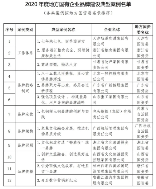 2020年度100個國有企業(yè)品牌建設典型案例和100個優(yōu)秀品牌故事,匯集企業(yè)優(yōu)秀經(jīng)驗做法,豐富國企品牌資源池,促進企業(yè)相互學習借鑒,加快提高品牌管理專業(yè)化水平。