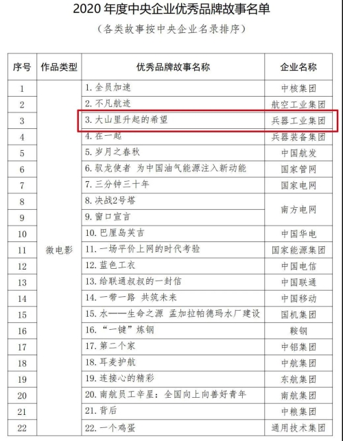 兵器工業(yè)集團品牌建設案例入選2020年度100個國有企業(yè)品牌建設典型案例和100個優(yōu)秀品牌故事