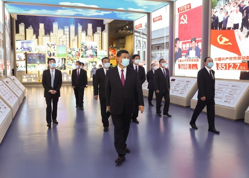 ■ 黨的歷史是最生動、最有說服力的教科書。我們黨的一百年,是矢志踐行初心使命的一百年,是篳路藍縷奠基立業(yè)的一百年,是創(chuàng)造輝煌開辟未來的一百年。回望過往的奮斗路,眺望前方的奮進路,必須把黨的歷史學習好、總結(jié)好,把黨的寶貴經(jīng)驗傳承好、發(fā)揚好,銘記奮斗歷程,擔當歷史使命,從黨的奮斗歷史中汲取前進力量。要教育引導廣大黨員、干部通過參觀學習,更加自覺地不忘初心、牢記使命,增強“四個意識”,堅定“四個自信”,始終在思想上政治上行動上同黨中央保持高度一致,堅定理想信念,學好用好黨的創(chuàng)新理論,賡續(xù)紅色血脈,發(fā)揚光榮傳統(tǒng),發(fā)揮先鋒模范作用,團結(jié)帶領(lǐng)全國各族人民,更好立足新發(fā)展階段、貫徹新發(fā)展理念、構(gòu)建新發(fā)展格局,全面做好改革發(fā)展穩(wěn)定各項工作,匯聚起全面建設(shè)社會主義現(xiàn)代化國家、實現(xiàn)中華民族偉大復興中國夢的磅礴力量