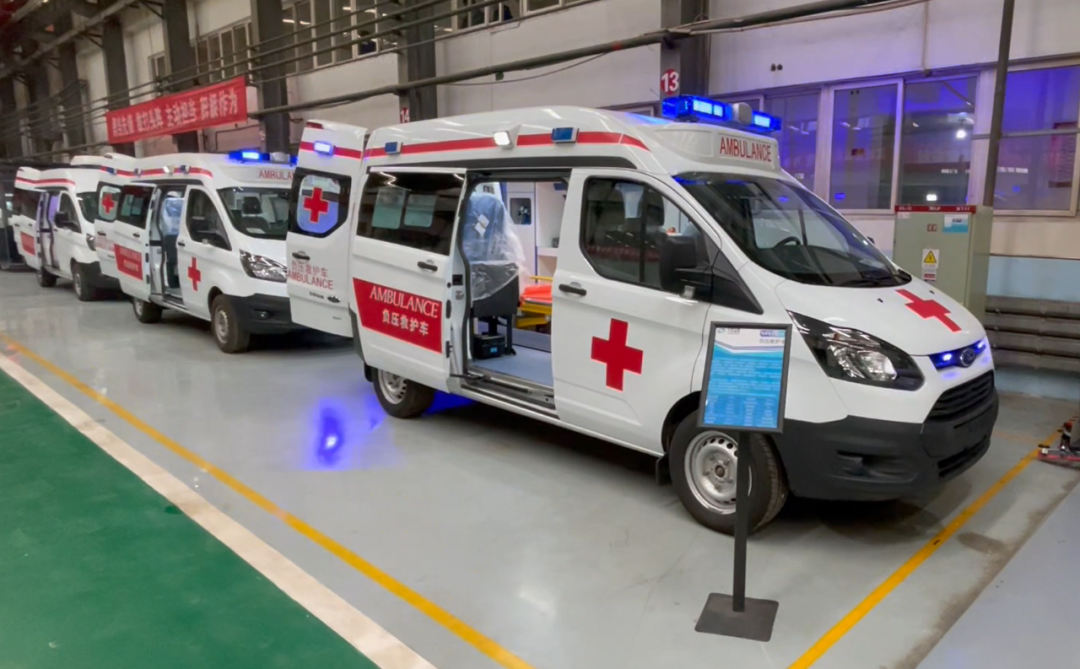 核酸采樣車采用福特新全順中軸中頂汽油款底盤,外觀與普通救護車類似,內(nèi)部上裝醫(yī)療輔助系統(tǒng)、空調(diào)系統(tǒng)、照明系統(tǒng)、新風(fēng)過濾系統(tǒng)等。其中,最為核心的醫(yī)療輔助系統(tǒng)包括采樣窗口、隔離手套、車載冰箱、洗手池系統(tǒng)、凈水桶、污水箱、污物桶、車載飲水機等。