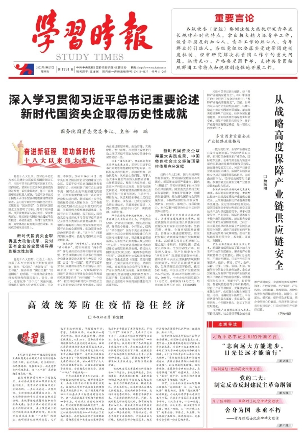 《學(xué)習(xí)時報》刊發(fā)郝鵬署名文章:深入學(xué)習(xí)貫徹習(xí)近平總書記重要論述 新時代國資央企取得歷史性成就