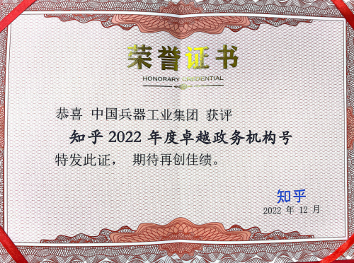 近日,中國兵器工業(yè)集團有限公司知乎號、抖音號分獲表彰,其中,集團公司知乎號獲評知乎頒發(fā)的“知乎2022年度卓越政務(wù)機構(gòu)號”;集團公司抖音號獲評抖音頒發(fā)的2022年政務(wù)抖音號“優(yōu)秀創(chuàng)作者”。