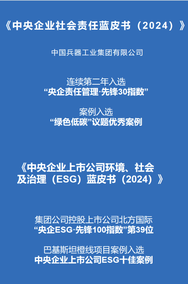 國(guó)有企業(yè)社會(huì)責(zé)任平行論壇現(xiàn)場(chǎng)發(fā)布了《中央企業(yè)社會(huì)責(zé)任藍(lán)皮書(shū)(2024)》《中央企業(yè)海外環(huán)境、社會(huì)及治理(ESG)藍(lán)皮書(shū)(2024)》《中央企業(yè)上市公司環(huán)境、社會(huì)及治理(ESG)藍(lán)皮書(shū)(2024)》等系列成果。其中,集團(tuán)公司連續(xù)第二年入選“央企責(zé)任管理·先鋒30指數(shù)”榜單,集團(tuán)公司案例入選“綠色低碳”議題優(yōu)秀案例,所屬控股上市公司北方國(guó)際入選“央企ESG·先鋒100指數(shù)”第39位,巴基斯坦橙線項(xiàng)目案例入選中央企業(yè)上市公司ESG十佳案例