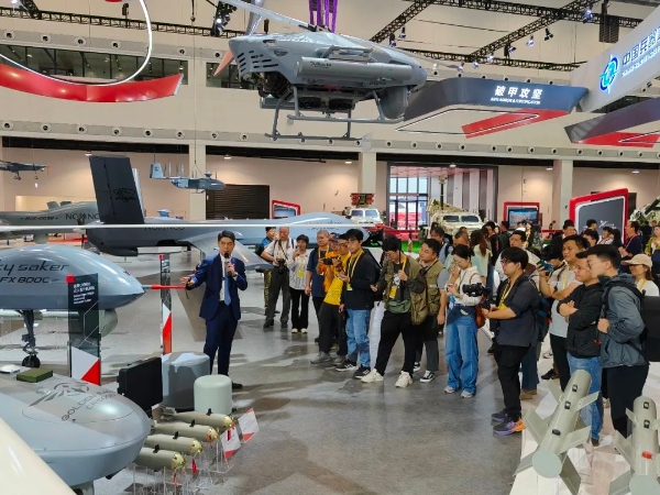 本屆航展,兵器工業(yè)集團(tuán)著重展示數(shù)智賦能軍貿(mào)合成旅作戰(zhàn)體系?!疤金^”現(xiàn)場(chǎng),新聞發(fā)言人向記者團(tuán)介紹了本屆航展集團(tuán)公司參展亮點(diǎn)、明星產(chǎn)品和技術(shù)發(fā)展成果,并對(duì)VT5-U輕型坦克、VU-T10無(wú)人平臺(tái)、SR5多管火箭炮、金雕CR500B無(wú)人直升機(jī)系統(tǒng)、指揮控制中心等參展裝備和技術(shù)作了重點(diǎn)介紹,媒體記者進(jìn)一步了解了裝備的性能和特點(diǎn)。在無(wú)人火力展區(qū),記者團(tuán)還走進(jìn)仿真訓(xùn)練體驗(yàn)區(qū),親身“使用”單兵武器,體驗(yàn)裝備性能。
