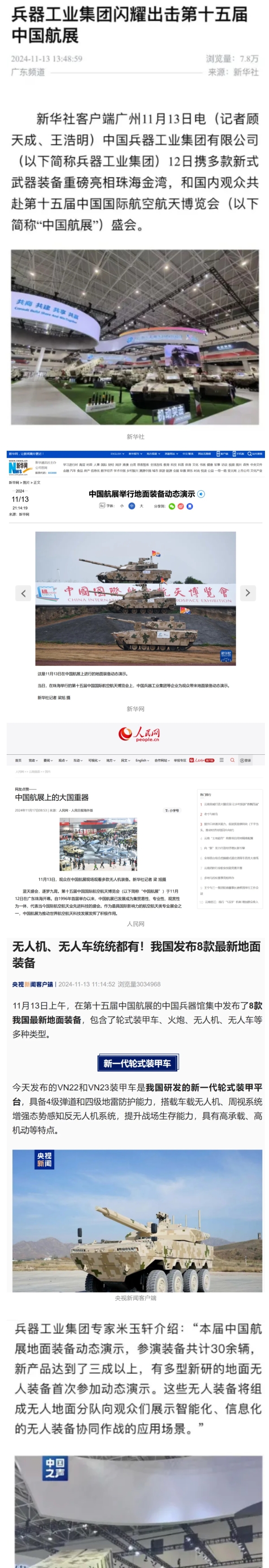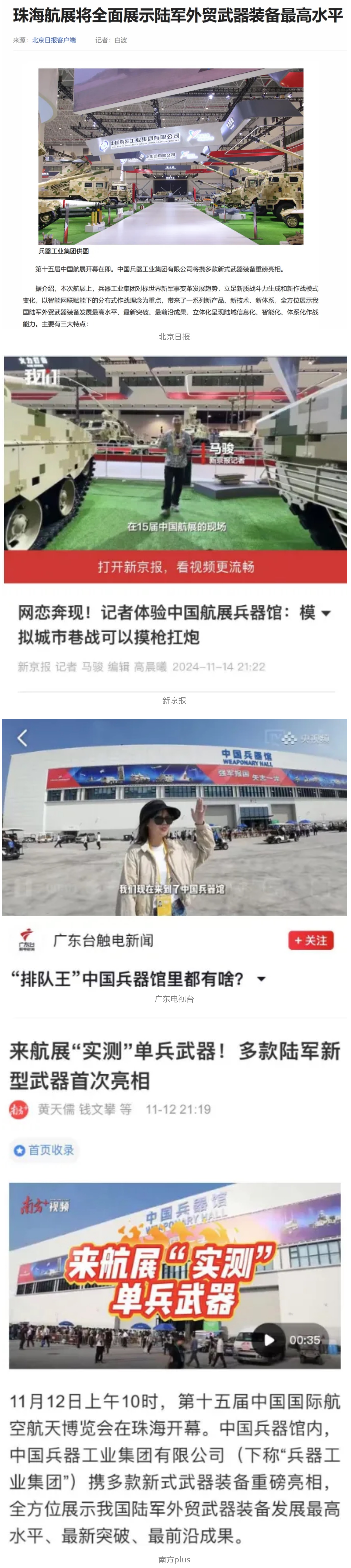 備受矚目!各大媒體廣泛報道兵器工業(yè)集團參展第十五屆中國航展